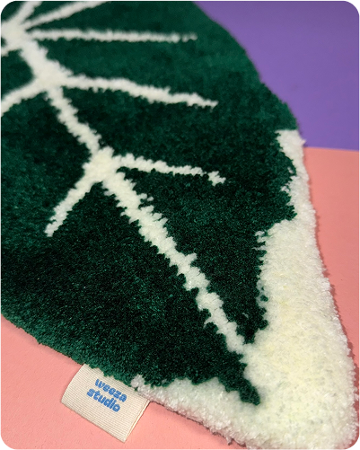 Einen Wandteppich fertige ich mithilfe der Handtufting-Methode an. Dabei wird hochwertiges Garn mithilfe einer Tuftingmaschine in das Trägergewebe eingearbeitet. Diese Technik erzeugt Schlaufen auf der Vorderseite, die später zu einer gleichmäßigen und räumlich wirkenden Fläche aufgeschnitten werden. Naturlatexkleber wird verwendet, um die Garne auf der Rückseite zu fixieren, während ein lockeres Baumwollgewebe für den letzten Schliff sorgt.